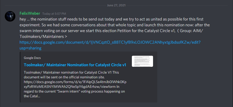 Toolmaker/ Maintainer nomination for Catalyst Circle V1